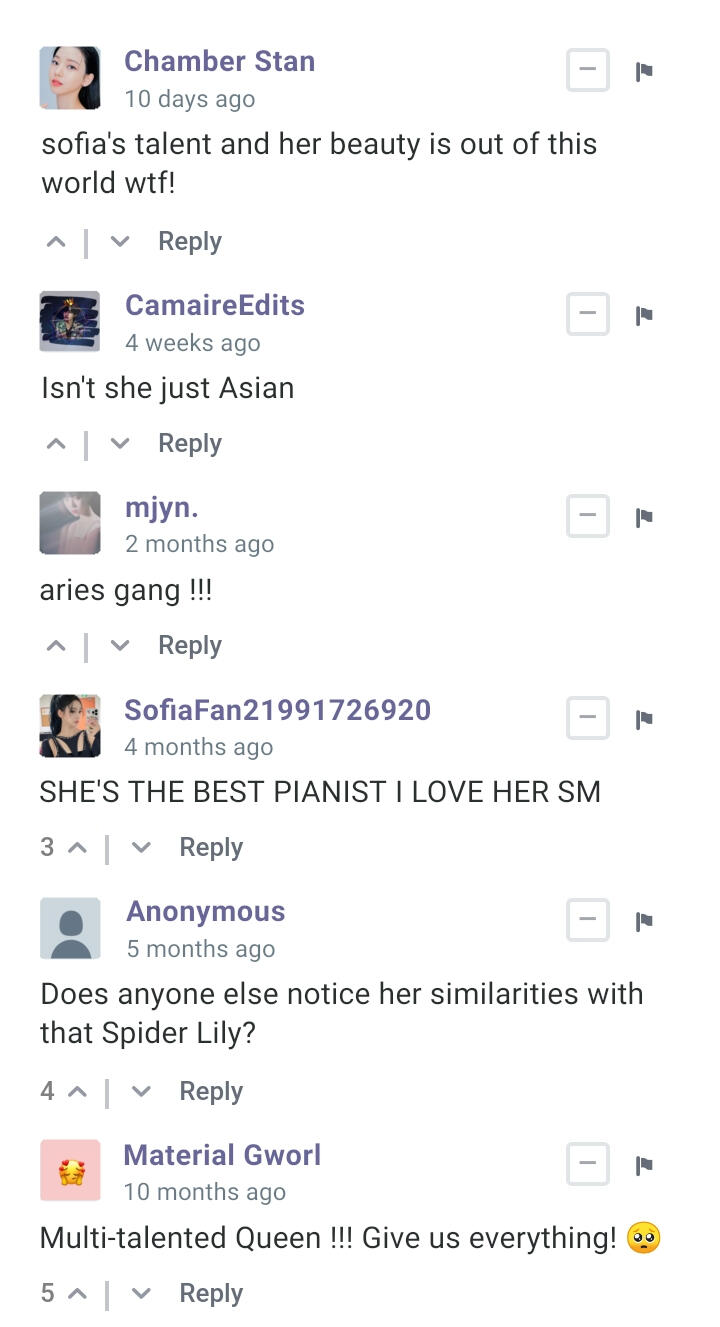 ㅤㅤㅤㅤAt 4 years old she began to ace each and every class, every extra-curricular activities – it seems that, in her parent’s eyes, she was perfect, a genius, and urged her to perfect every talent she can ever get her hands on. And over the years into being a teenager, Sofia grew to be the prodigy that she is in multiple subjects in Internationella Engelska Gymanasiet in Sweden, always achieving the highest honors among all of her classmates, always doing her utmost best to make her parents proud. Ever since she got to school, she kept the title of being an “Overachiever,” or her most famous one yet, “The Virtuoso”, acing each and every class and extra-curricular activities she was a member in. It had been a running joke that she’s obsessed with collecting certificates, trophies, and praises just for the fun of it. She took classes like Taekwondo, Piano, Guitar, Ukulele, Violin, Cello, and Harp and Flute lessons. And always being awarded as Top 1 in contests, awards, never second, nor third. And her self-esteem and confidence is thus carried by her achievements, and would increase using people’s praises, most especially her parents’. She never gained any close friends that lasted years, mostly acquaintances that relied on her on projects, and assignments.