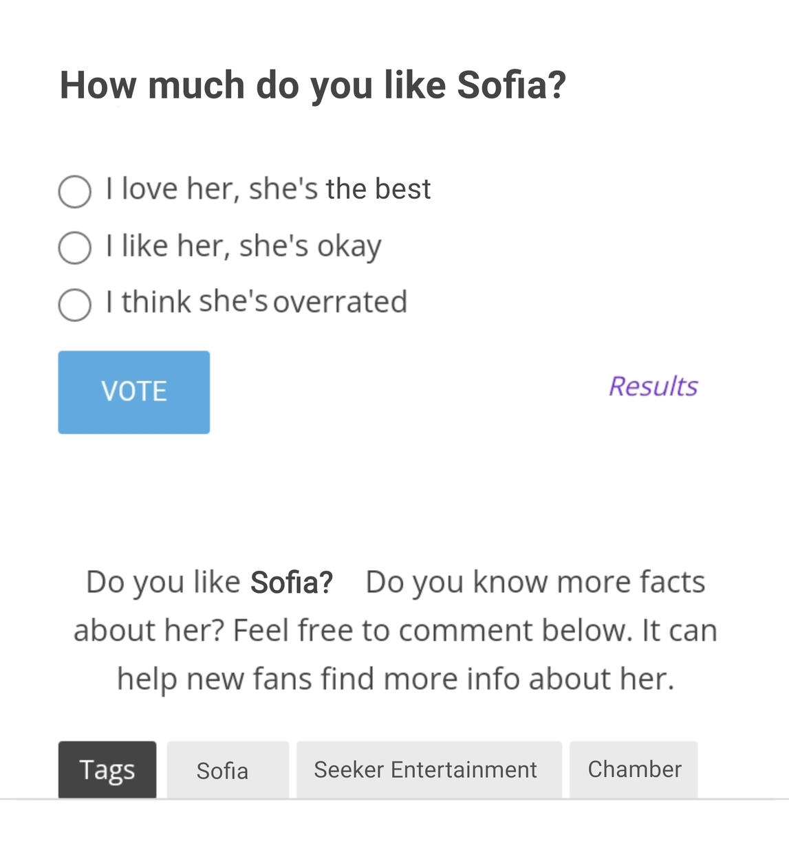 | Best-Friend/s, depending on how many applies. This can be a bit of a mess – according to the writer’s standards – as having a “best friend” requires a bond that’s been formed for a long time, perhaps a minimum of a month to a few years to be able to use the label of “best friend”. To apply as Sofia’s best friend, one should be able to befriend and form a bond with her, with no exact limits of time whatsoever, as long as you’d be her friend. |